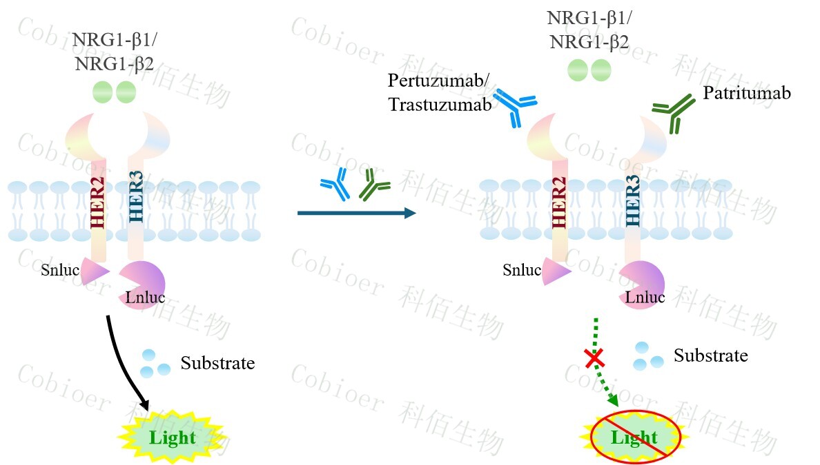 ERBB2&ERBB3 Dimerization CHO 報告基因藥靶模型很好的模擬了體內(nèi) ERBB2&ERBB3 的信號轉導過程,原理見圖所示。![]() Figure 1. ERBB2&ERBB3 Dimerization CHO 細胞模型原理圖 |