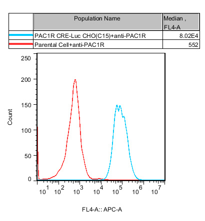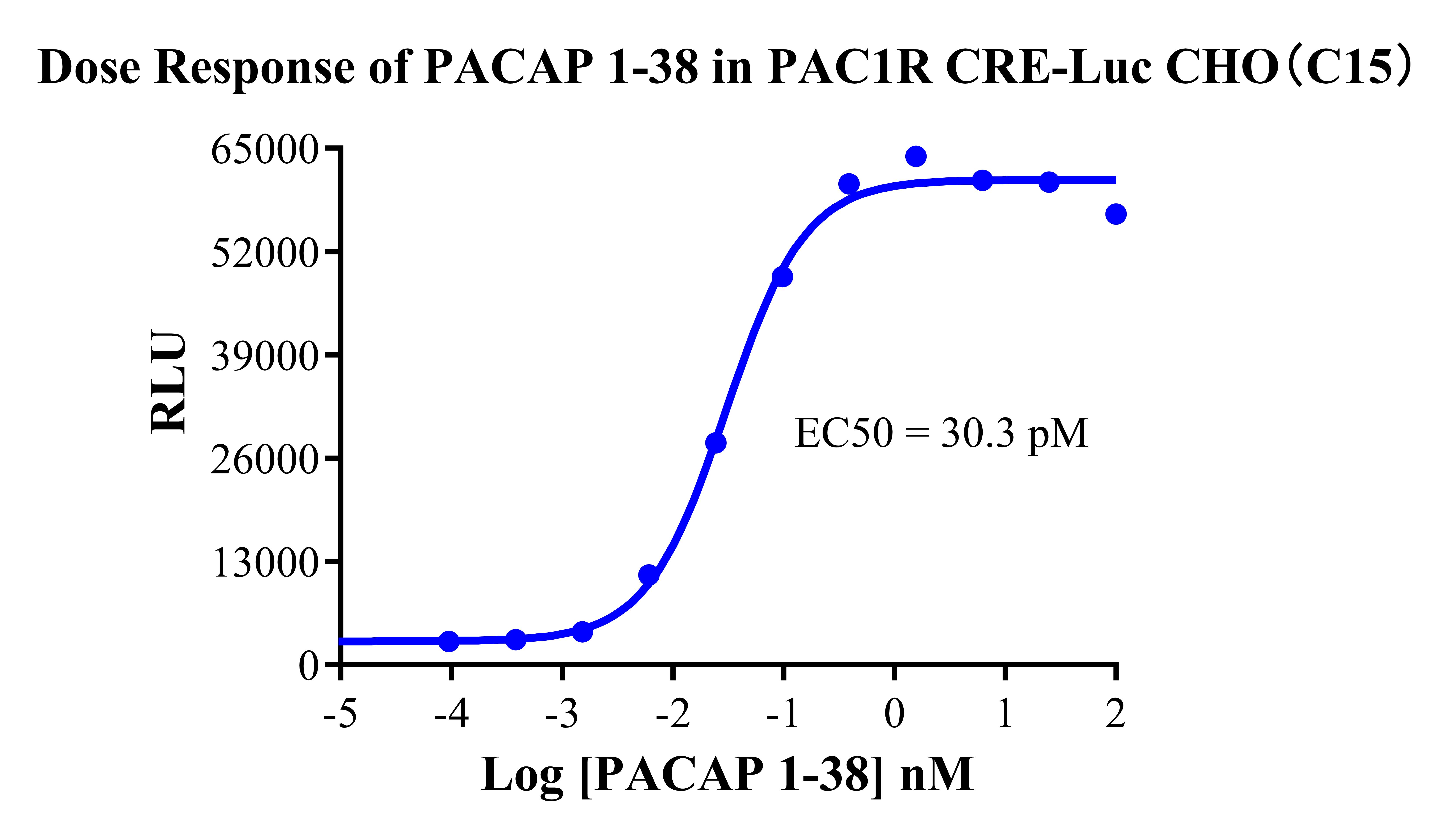 PAC1R CRE-Luc CHO 報告基因藥靶模型很好的模擬了體內(nèi) PAC1R 的信號轉(zhuǎn)導(dǎo)過程, 原理見下圖所示。![]() Figure 1. PAC1R CRE-Luc CHO 細(xì)胞模型原理圖 |