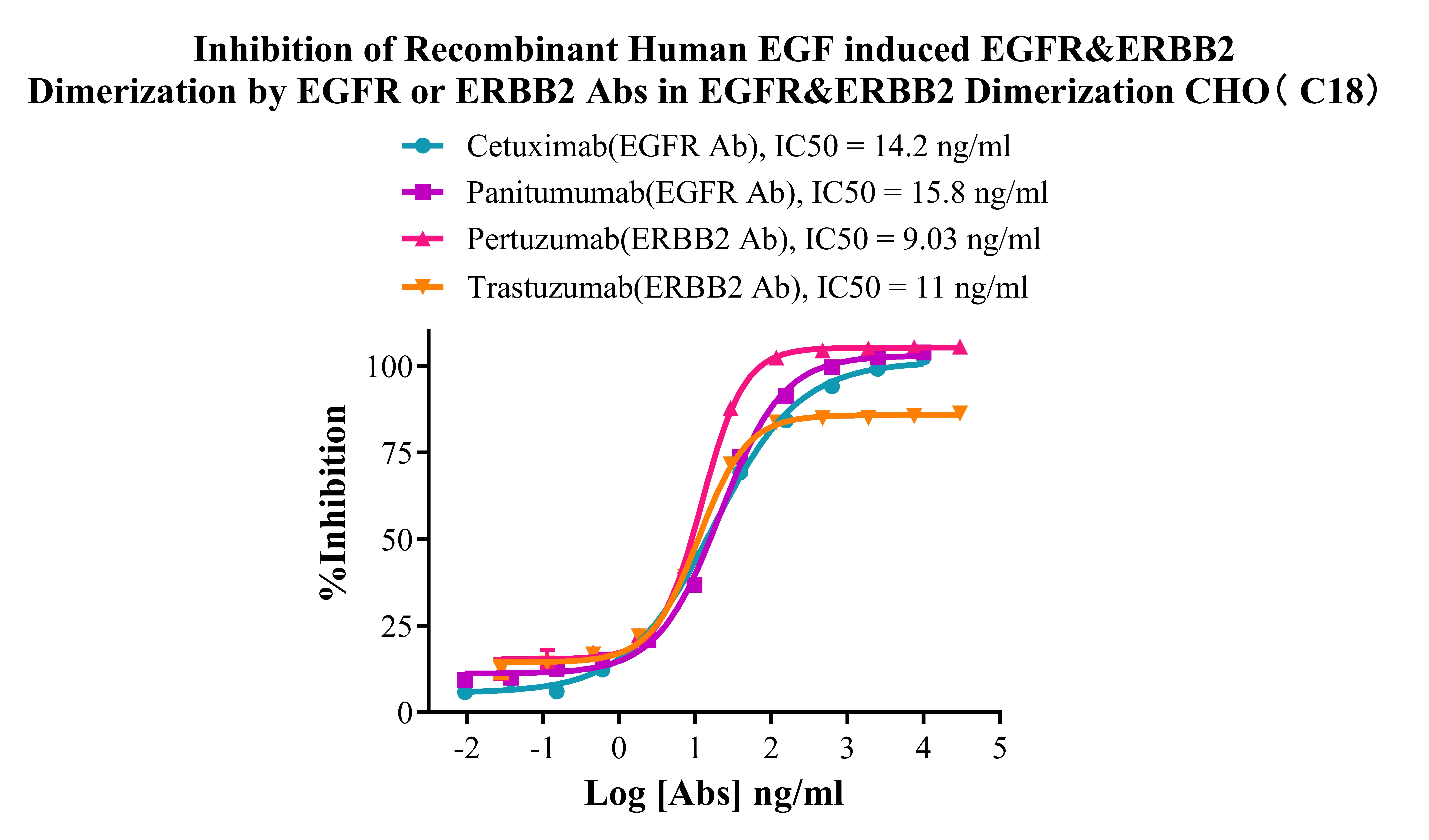 Figure 4. Inhibition of Recombinant Human EGF induced EGFR&ERBB2 Dimerization by EGFR or ERBB2 Abs in EGFR&ERBB2 Dimerization CHO (C18).