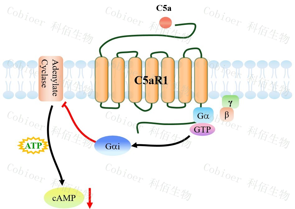 | 補(bǔ)體 C5a 是由補(bǔ)體系統(tǒng)經(jīng) C5 轉(zhuǎn)化酶裂解 C5 產(chǎn)生的強(qiáng)效炎癥介質(zhì),作為核心過敏毒素 通過結(jié)合受體 C5aR1/C5aR2 驅(qū)動(dòng)中性粒細(xì)胞趨化、氧化爆發(fā)及炎性因子(IL-6/TNF-α)釋 放,在膿毒癥中誘發(fā)“細(xì)胞因子風(fēng)暴”,在自身免疫?。ㄈ珙愶L(fēng)濕關(guān)節(jié)炎)中促進(jìn)組織侵 蝕,在腫瘤微環(huán)境募集髓系抑制細(xì)胞(MDSC)介導(dǎo)免疫逃逸。 C5aR1(CD88)是補(bǔ)體過敏毒素 C5a 的高親和力 GPCR,主要表達(dá)于髓系細(xì)胞(中性 粒細(xì)胞、單核細(xì)胞、肥大細(xì)胞),通過激活 Gi/Gq 蛋白-PI3K/MAPK 通路驅(qū)動(dòng)炎癥級(jí)聯(lián)反應(yīng)。 |