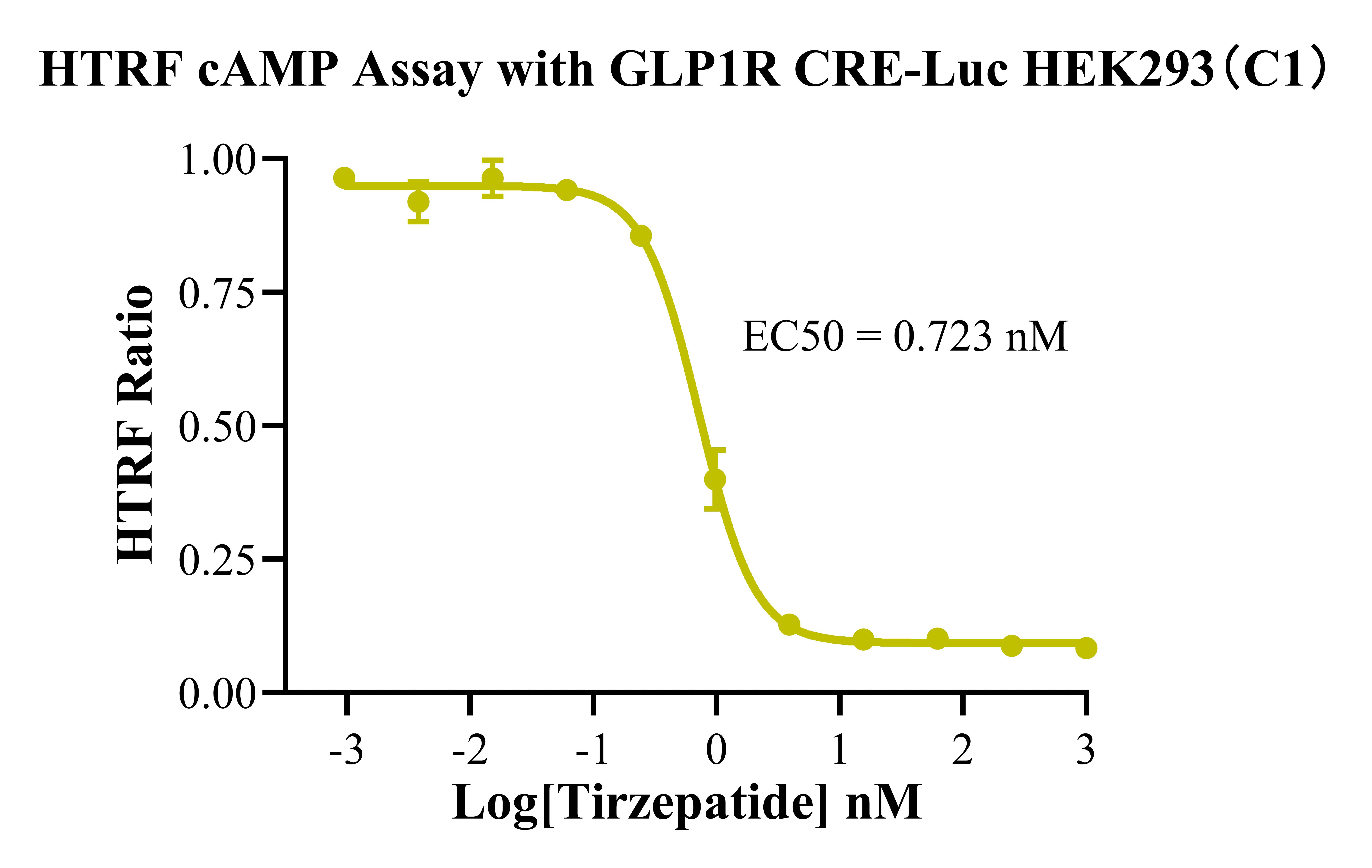 GLP1R CRE-Luc HEK293 報(bào)告基因藥靶模型很好的模擬了體內(nèi) GLP1R 的信號(hào)轉(zhuǎn)導(dǎo)過(guò)程,原理見(jiàn)下圖所示。