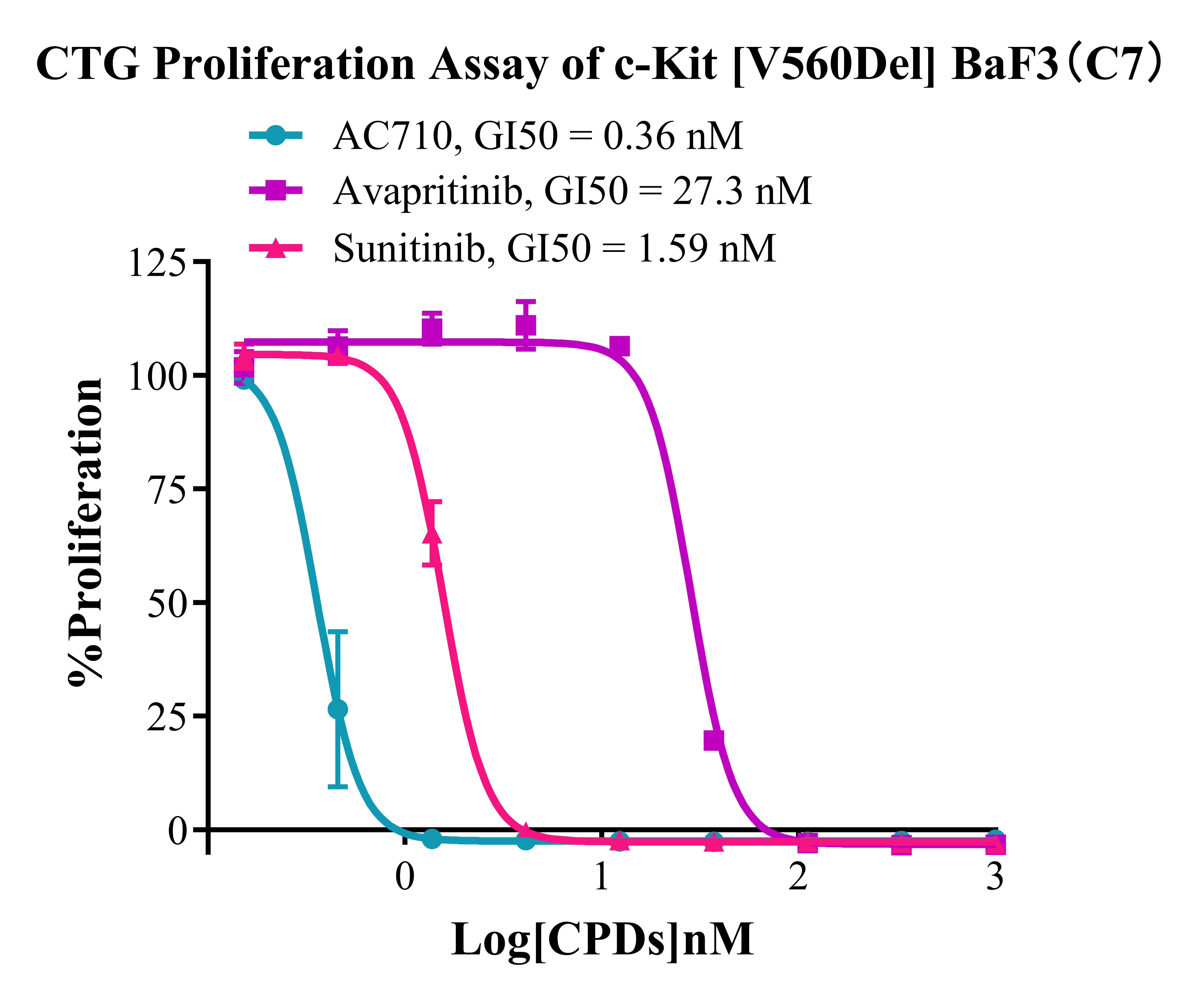 Figure 4. CTG Proliferation Assay of c-KIT [V560del] BaF3(C7). |