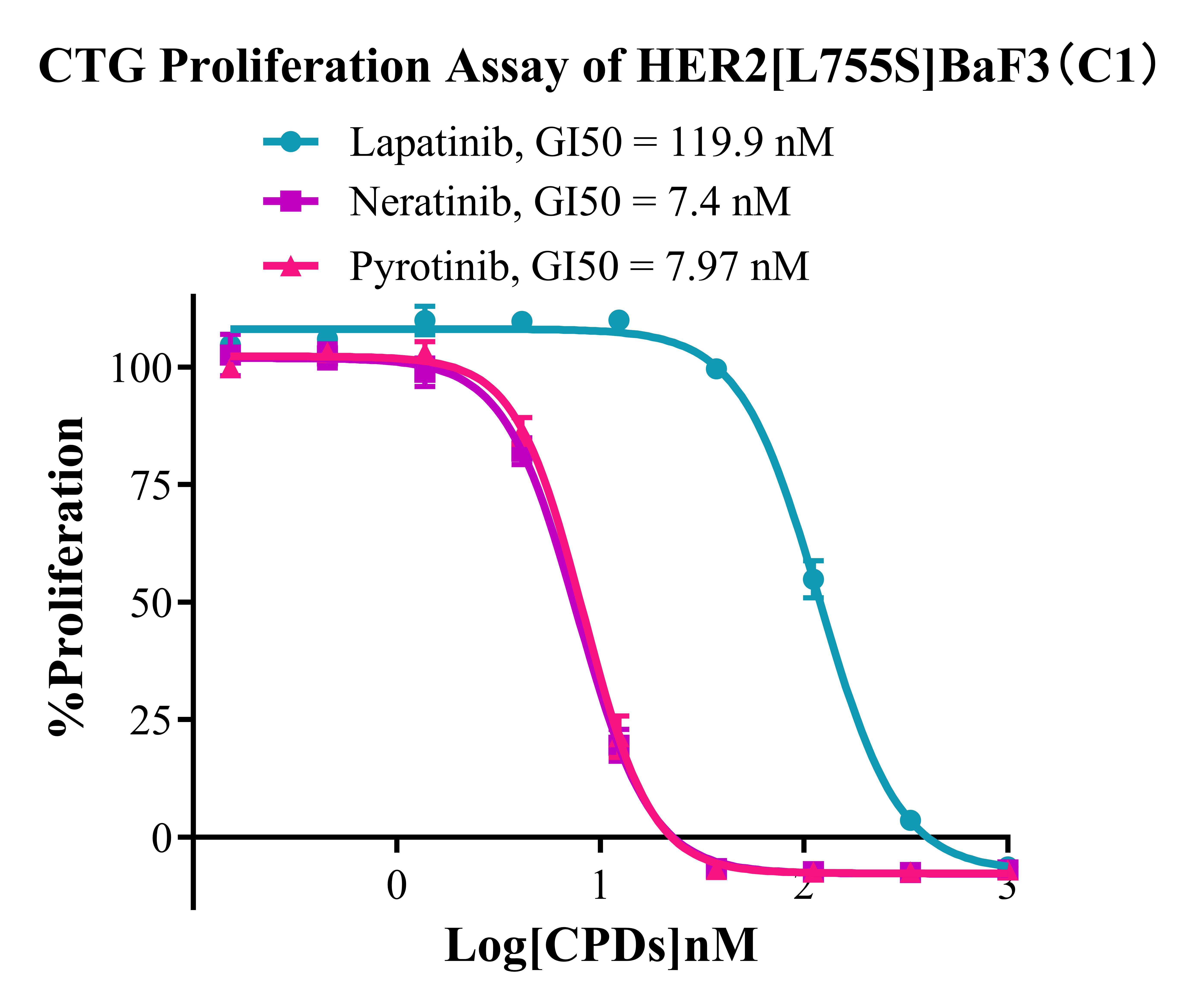 Figure 3. CTG Proliferation Assay of  Her2 [L755S] BaF3 (C1).