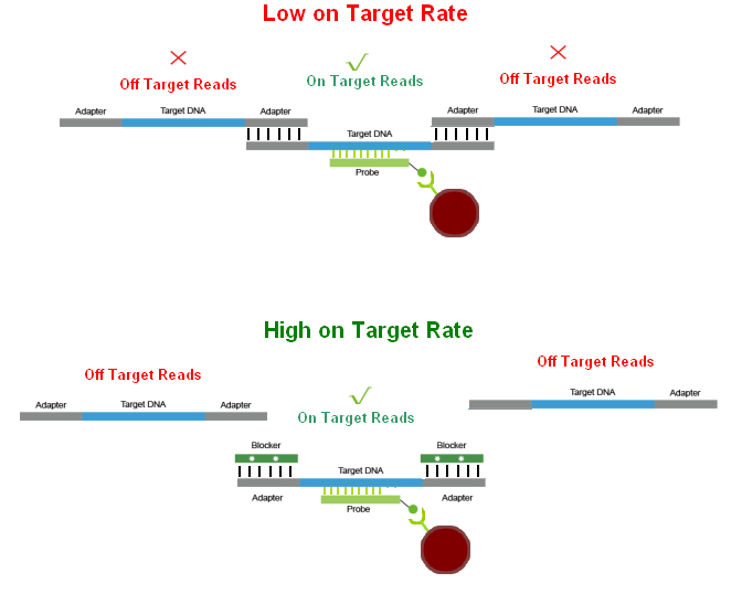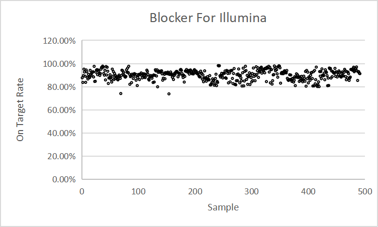 Universal Blocker for Illumina是針對Illumina 平臺普通DNA文庫開發(fā)的適用于液相雜交捕獲通用型接頭封阻序列,可有效減少雜交過程中因接頭之間退火而造成的不同文庫分子之間形成的串聯(lián)結構,從而降低非特異性雜交。 適用于Illumina Truseq測序平臺的液相雜交捕獲通用封阻斷序列。 適用于6 - 10 bp Index Barcode。 適用于含UMI序列的接頭文庫。 顯著降低接頭之間的非特異性結合,提高中靶率和富集程度。 在相同測序數(shù)據(jù)量情況下,顯著提升有效測序深度。