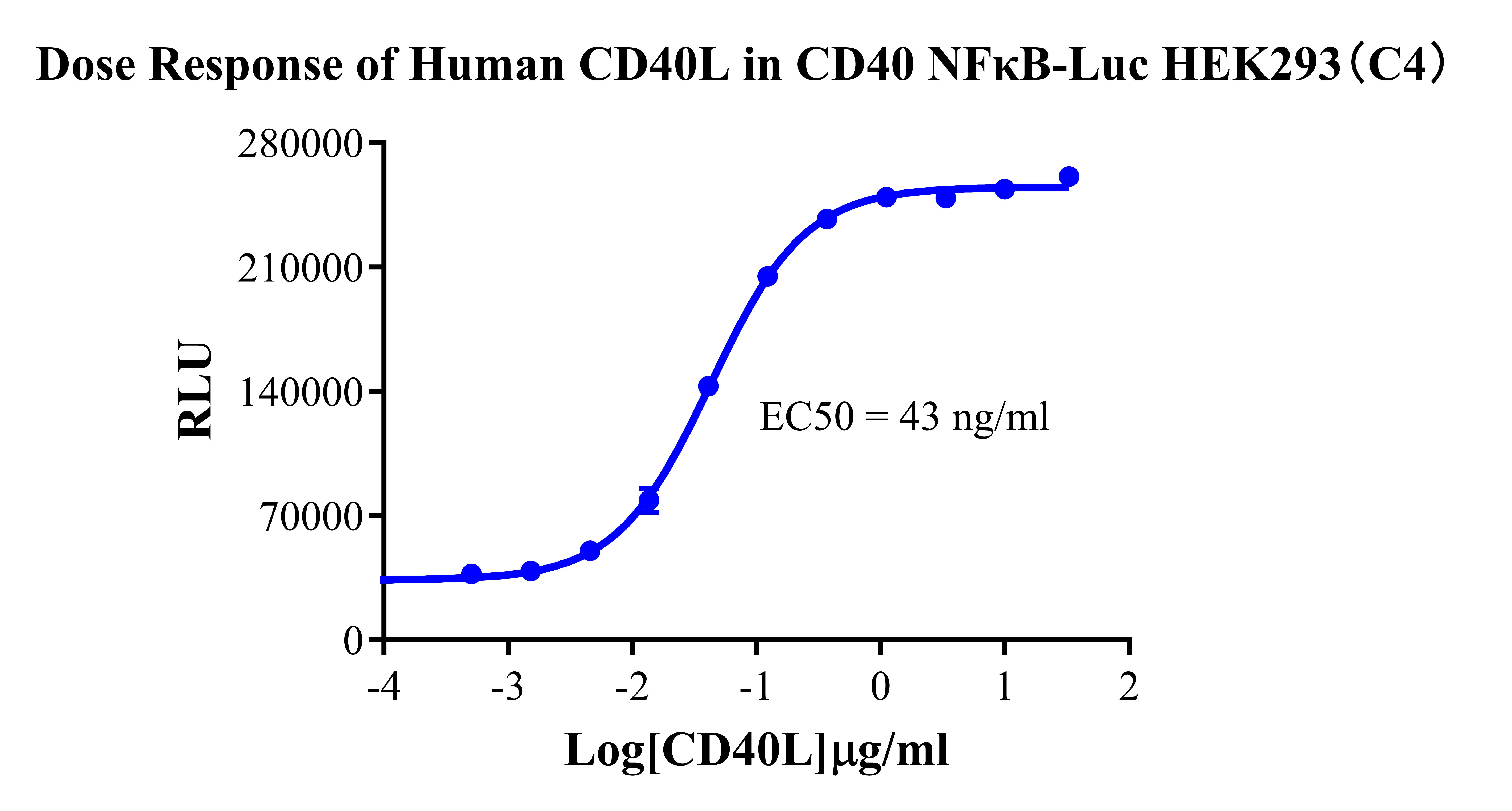 | CD40 是腫瘤壞死因子受體超家族(TNFRSF)成員,作為免疫調(diào)節(jié)的關(guān)鍵分子,廣泛 參與 B 細(xì)胞活化、抗原呈遞細(xì)胞(APC)成熟及 T 細(xì)胞免疫應(yīng)答。其配體 CD40L(CD154) 主要表達于活化的 T 細(xì)胞,通過 CD40-CD40L 互作橋接先天性與適應(yīng)性免疫,是腫瘤免疫 治療、自身免疫病及感染性疾病的熱門靶點。 CD40 信號轉(zhuǎn)導(dǎo)主要利用 TNF 受體相關(guān)因子的銜接蛋白,導(dǎo)致經(jīng)典和非經(jīng)典 NFκB 通 路、MAPK、PI3K 和 PLCγ的激活。它們的激活導(dǎo)致特征性下游效應(yīng),包括轉(zhuǎn)錄激活、細(xì) 胞骨架重排和細(xì)胞存活。 |