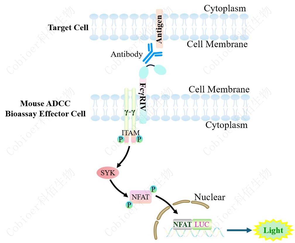 Figure 1. Mouse ADCC Bioassay Effector Cell 模型原理圖 |