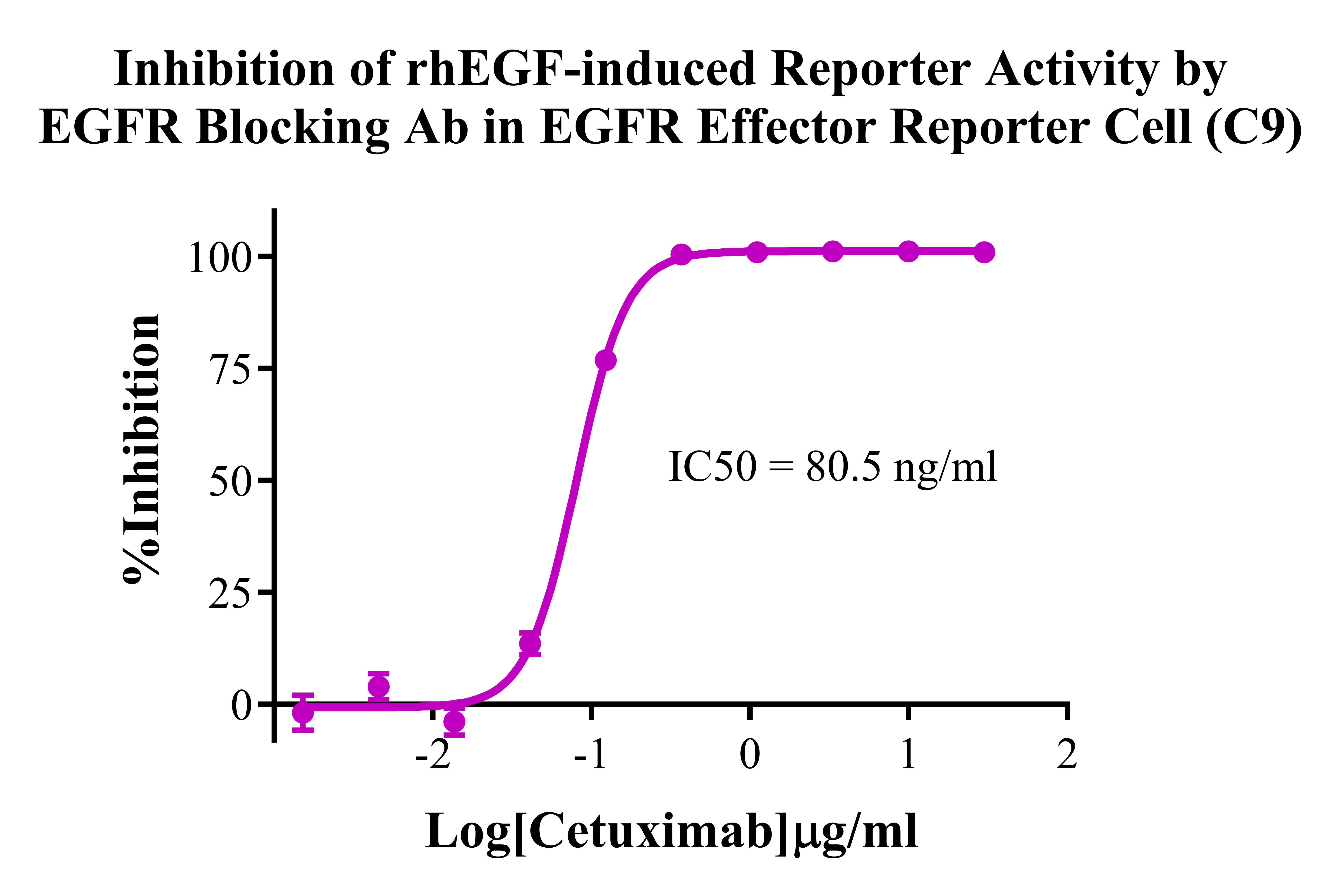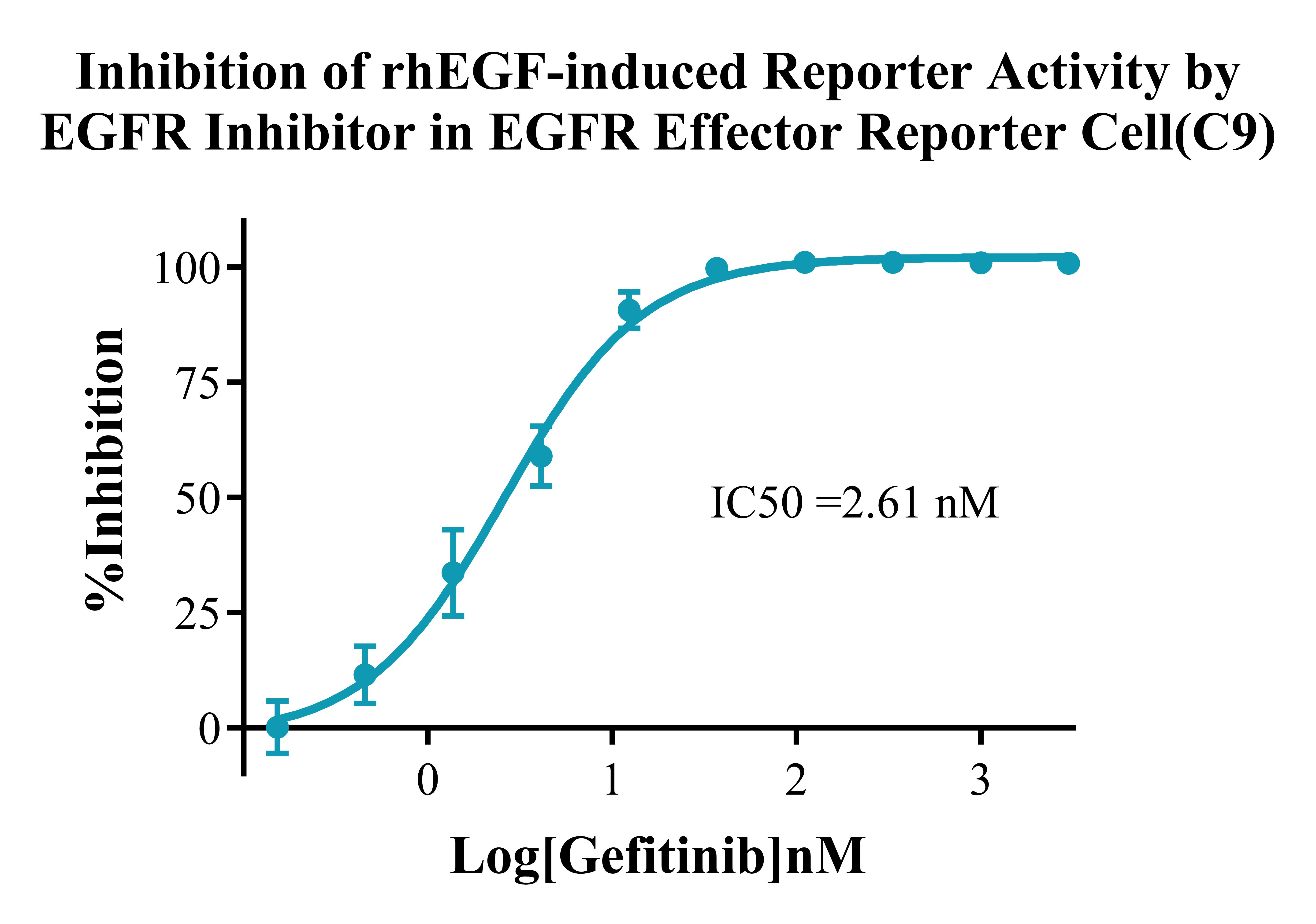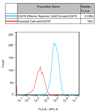 III. Representative Data![]() Figure 2. Recombinant EGFR Effector Reporter Cell stably expressing EGFR. ![]() Figure 3. Dose Response of Recombinant Human EGF in EGFR Effector Reporter Cell (C9). ![]() Figure 4. Inhibition of rhEGF-induced Reporter Activity by EGFR Blocking Ab in EGFR Effector Reporter Cell (C9). ![]() Figure 5. Inhibition of rhEGF-induced Reporter Activity by EGFR Inhibitor in EGFR Effector Reporter Cell (C9). |