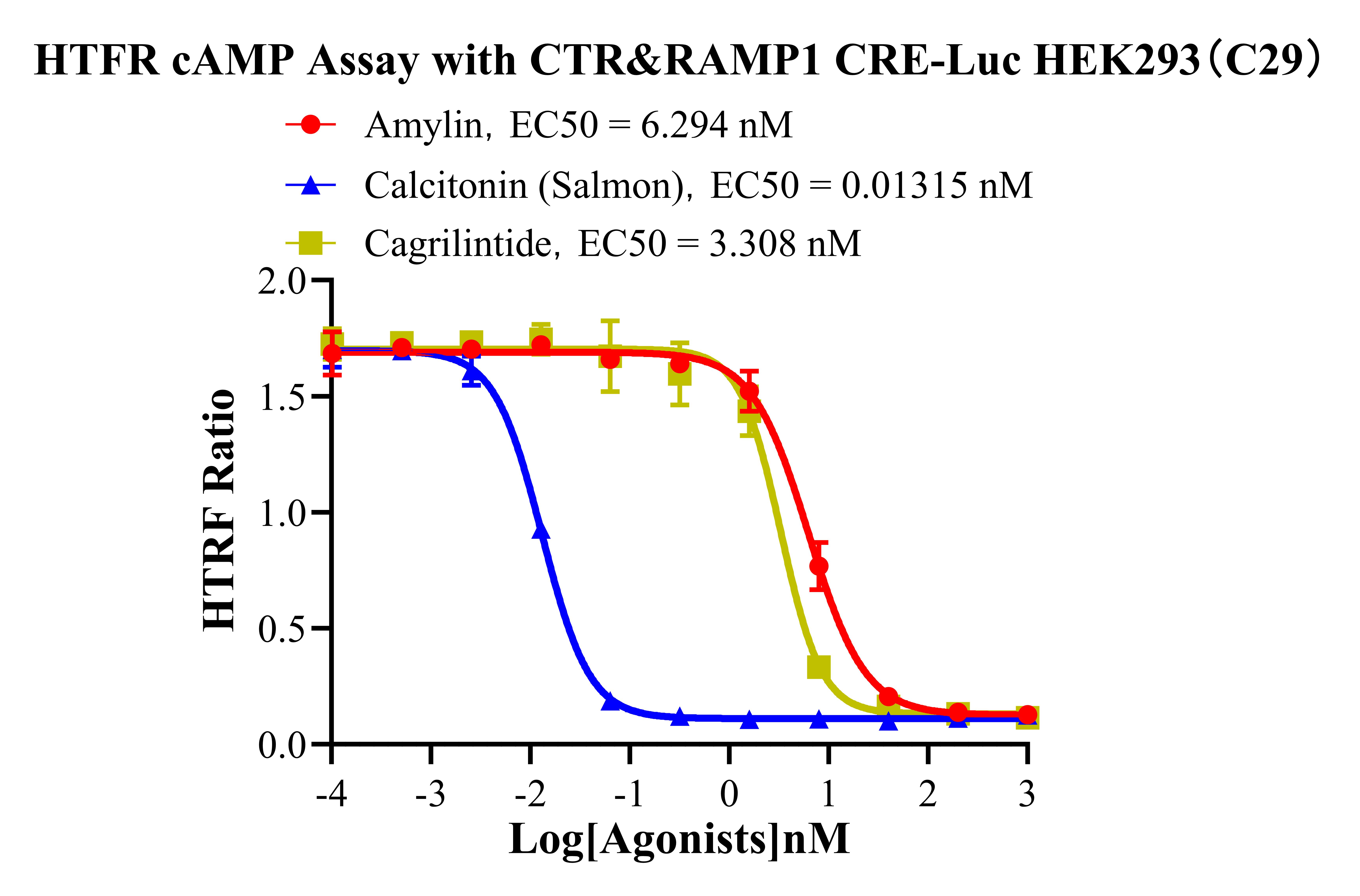 Figure 5. HTRF cAMP Assay with CTR&RAMP1 CRE-Luc HEK293 (C29). |