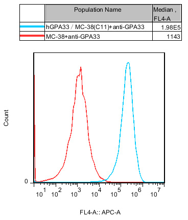 | hGPA33/MC-38 細(xì)胞,在 MC-38 細(xì)胞的基礎(chǔ)上,穩(wěn)定表達(dá)人 GPA33。 | |