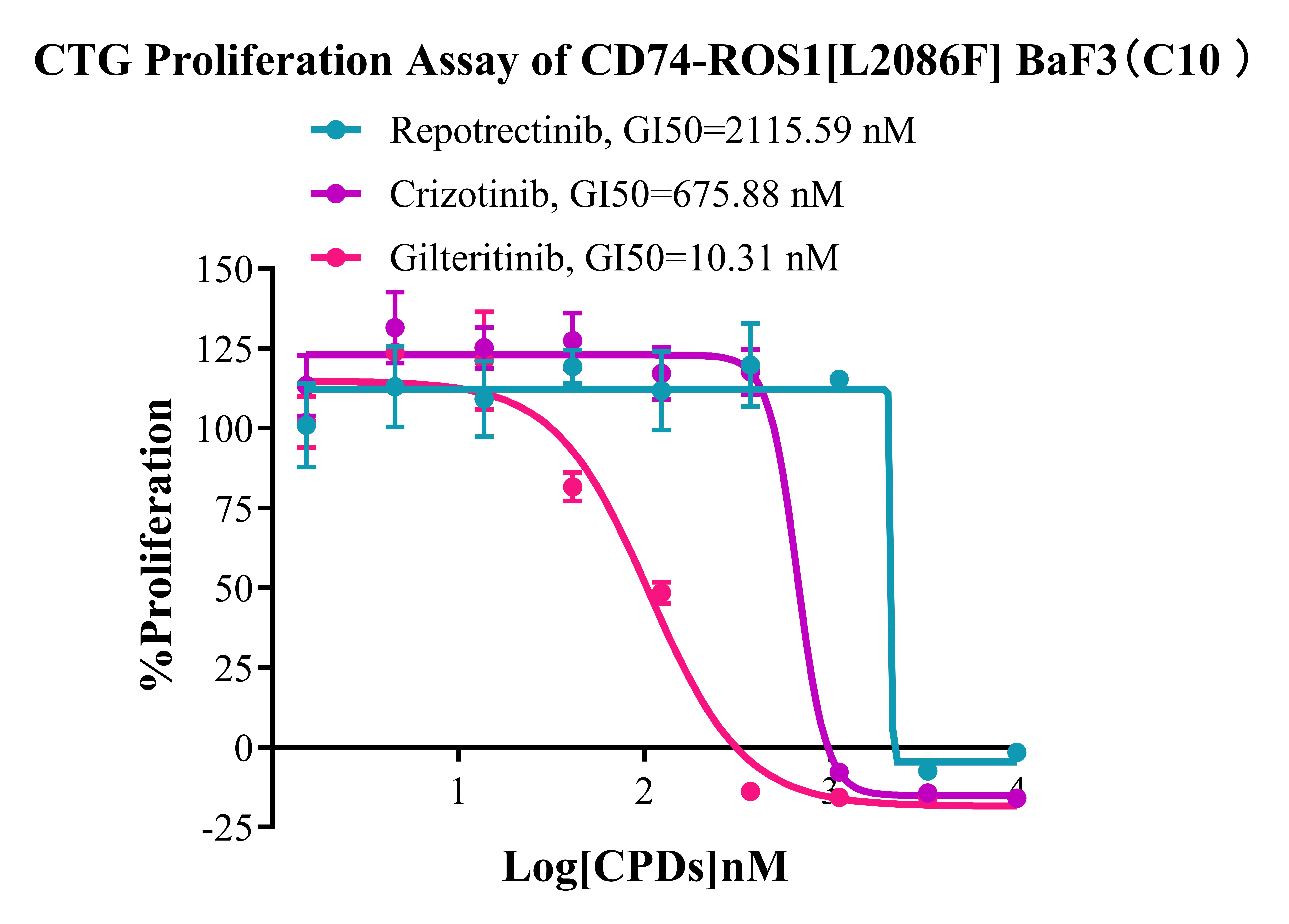 Figure 4. CTG Proliferation Assay of CD74-ROS1 [L2086F] BaF3( C10). |
