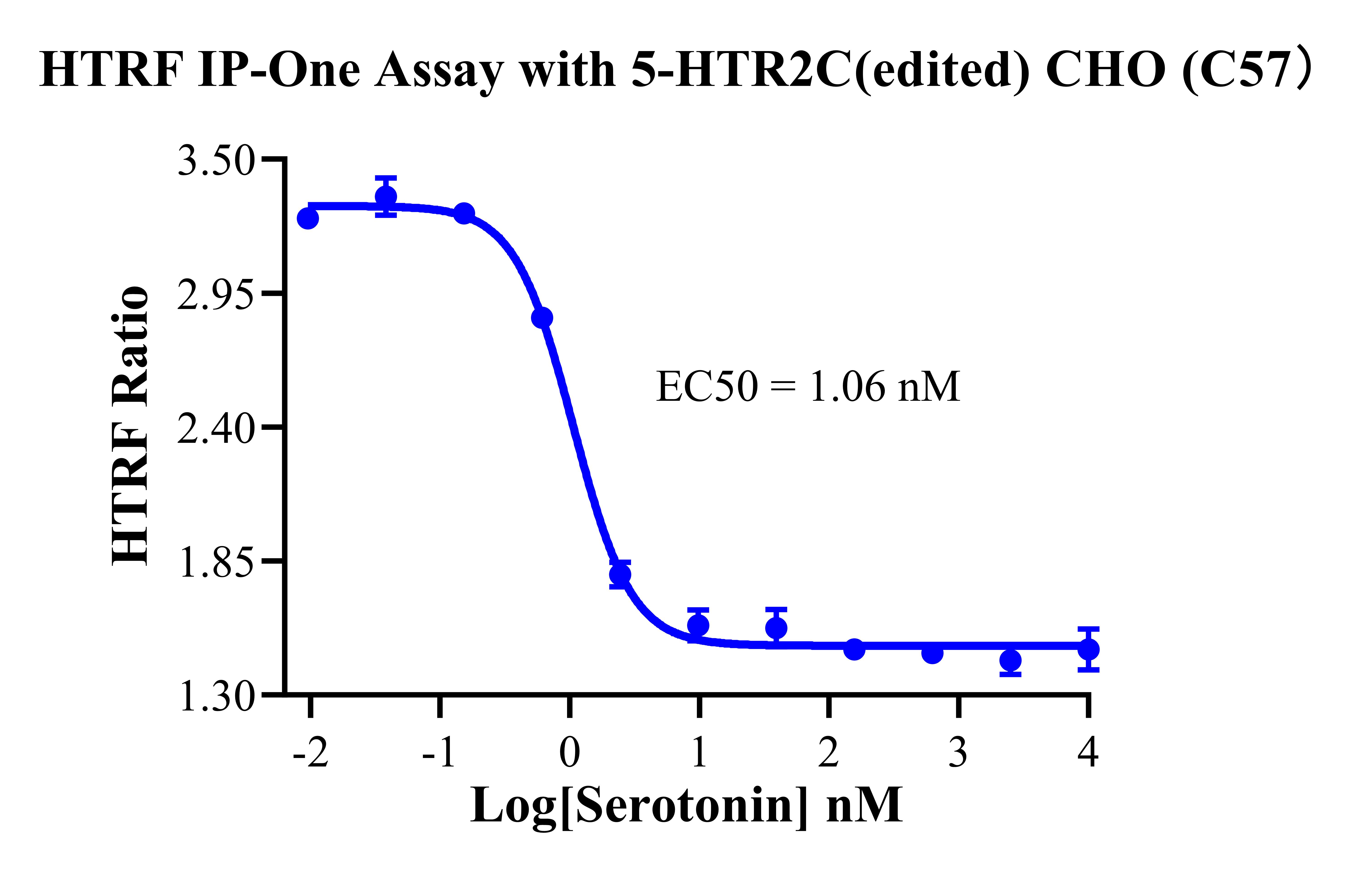 V. Representative Data![]() Figure 1. Recombinant 5-HTR2C (edited) CHO stably expressing h5-HTR2C. ![]() Figure 2. HTRF IP-One Assay with 5-HTR2C(edited)CHO(C57). |