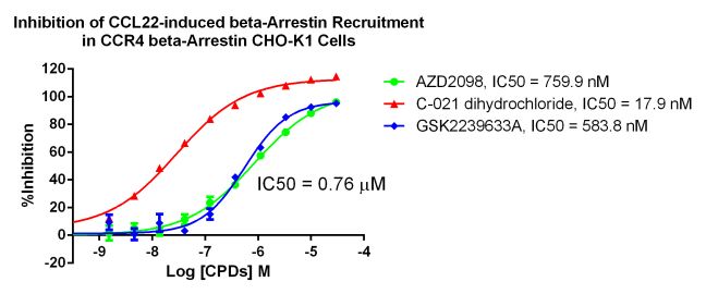 Figure 3. Inhibition of CCL22-induced beta-Arrestin Recruitment in CCR4 beta-Arrestin CHO-K1 Cells.. |