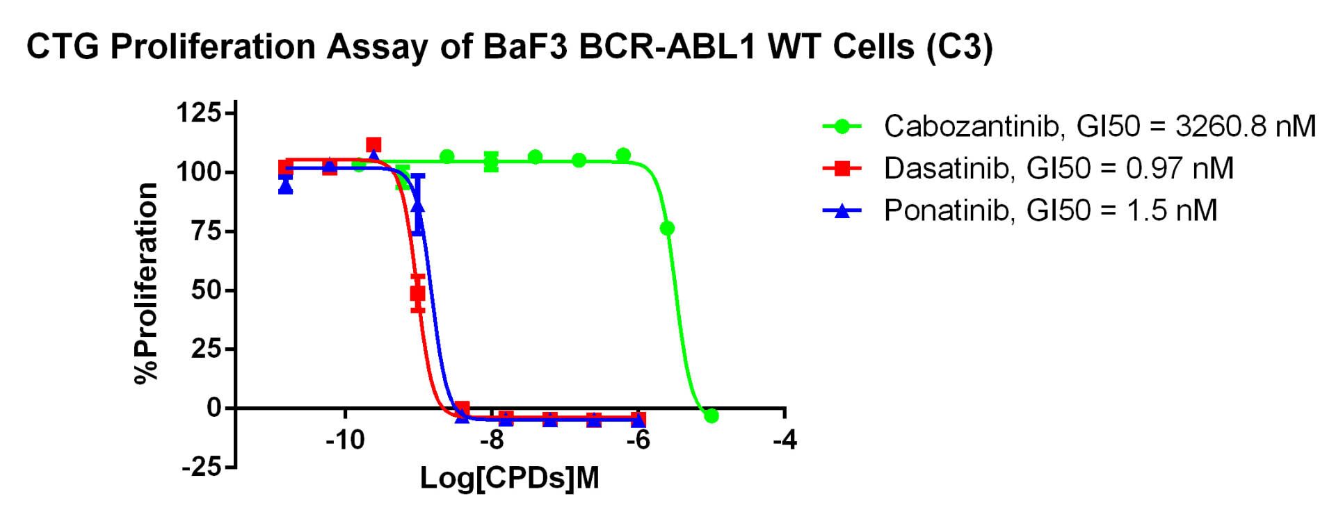 Figure 3. CTG Proliferation Assay of BaF3 BCR-ABL1 WT Cells (C3).
