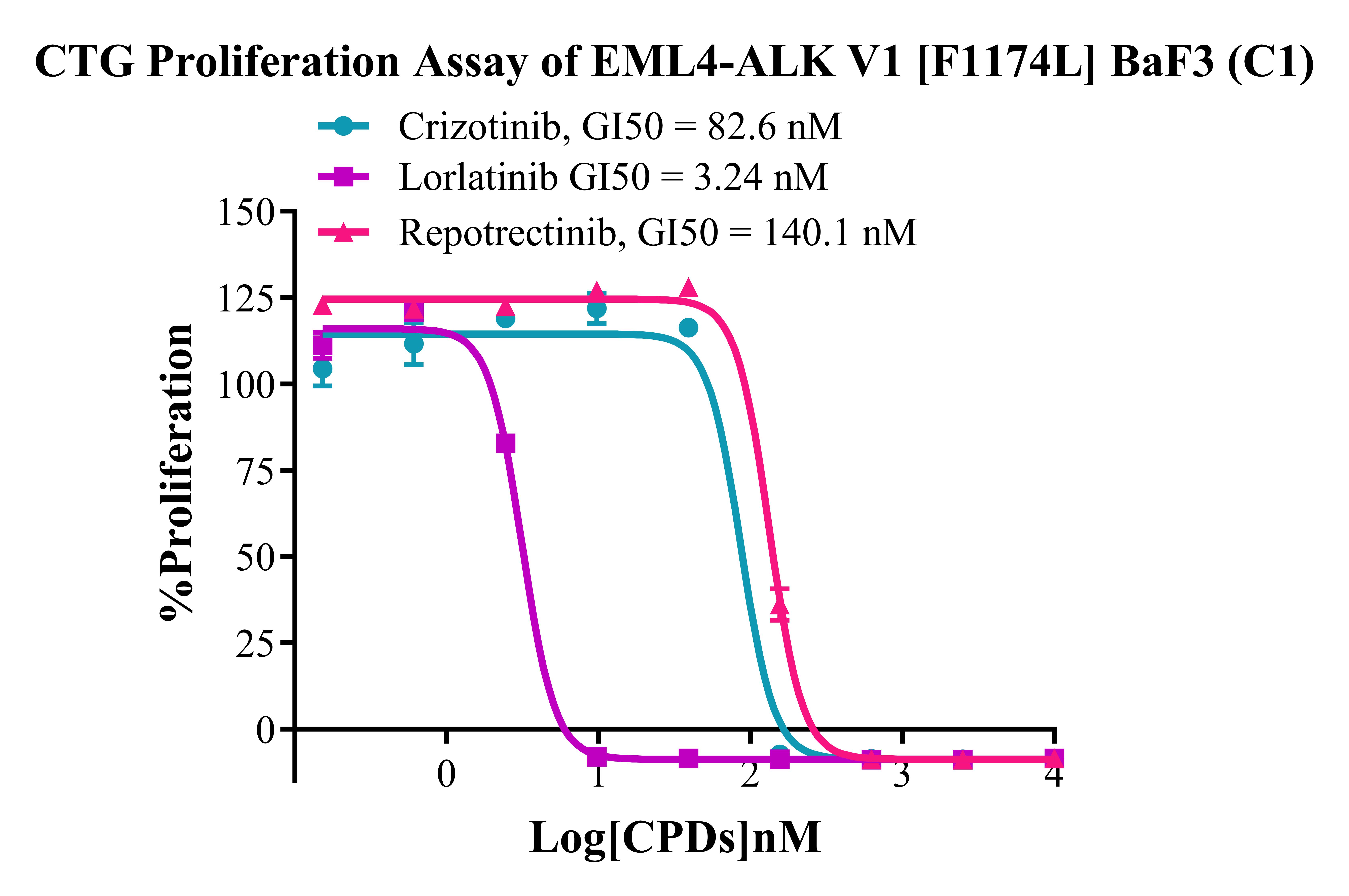 Figure 3. CTG Proliferation Assay of EML4-ALK V1 [F1174L] BaF3(C1). |