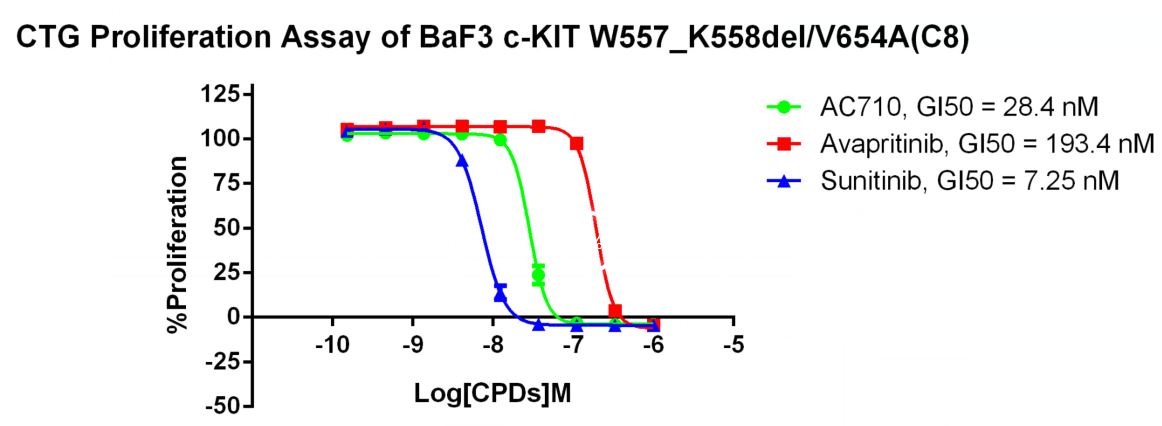 Figure 4. CTG Proliferation Assay of BaF3 C-KIT W557_ K558del/V654A(C8). |