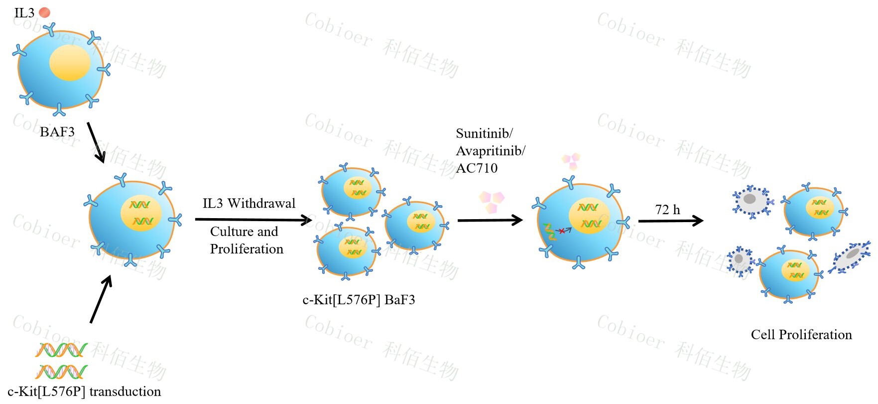 c-Kit[L576P] BaF3 藥靶細胞,通過轉(zhuǎn)導(dǎo)突變狀態(tài)的 c-Kit[L576P] 基因到 BaF3 細胞系中,穩(wěn)定表達人突變形態(tài)下的 c-Kit[L576P] 基因。