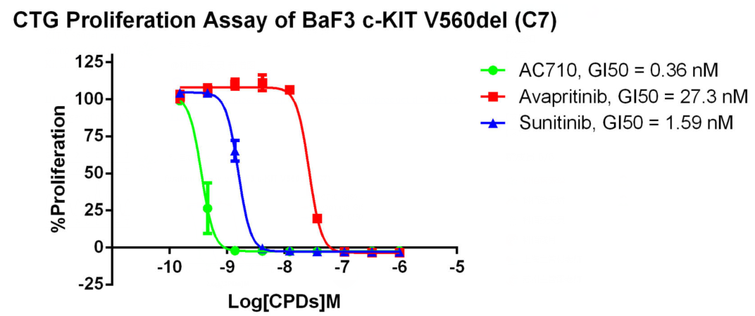 Figure 3. CTG Proliferation Assay of BaF3 c-KIT V560del (C7). |