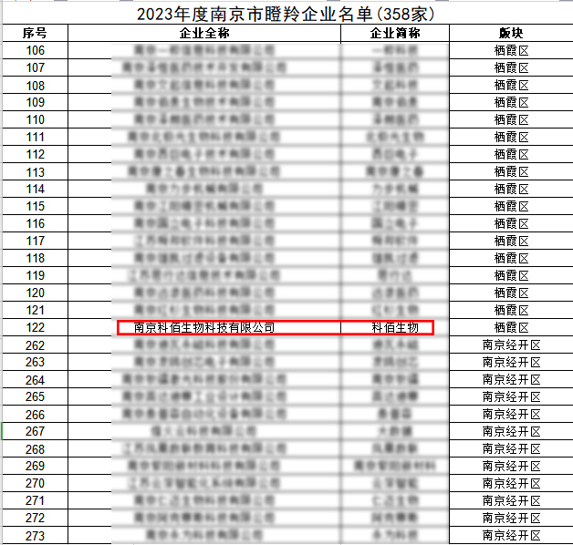 科佰生物入選“2023年度南京市瞪羚企業(yè)”