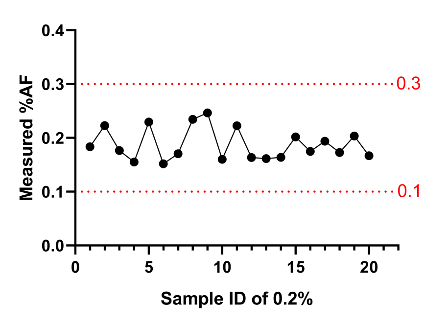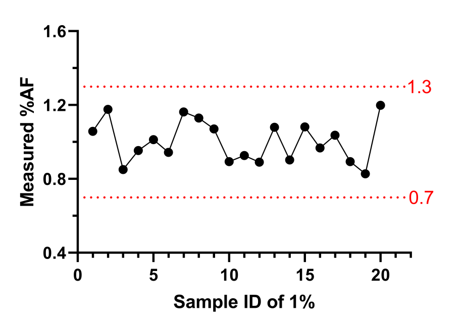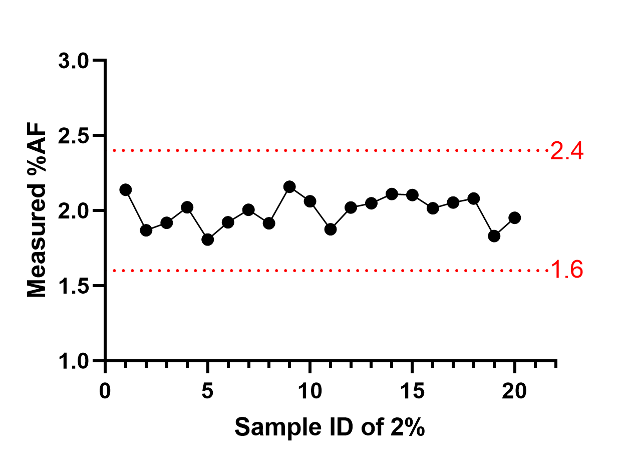 由上數(shù)據(jù)可見:在10ng的投入量下,AF%呈現(xiàn)非常好的線性稀釋,存在波動,但是都在誤差范圍內(nèi)。