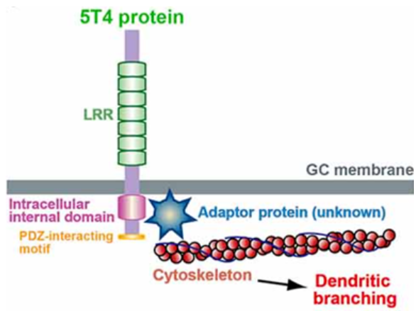 人類(lèi)和小鼠的5T4蛋白的同源性可達(dá)81%。大量的證據(jù)顯示5T4與不同的生理、病理過(guò)程密切相關(guān),如細(xì)胞間連接、細(xì)胞形態(tài)及運(yùn)動(dòng)、細(xì)胞黏附能力、細(xì)胞膜的完整性等等。5T4廣泛表達(dá)于胚胎發(fā)育期的各種滋養(yǎng)層細(xì)胞,但在正常成人組織中表達(dá)極少,只在幾種上皮細(xì)胞中表達(dá),但卻在很多癌癥細(xì)胞中有表達(dá),包括結(jié)腸癌、胃癌、卵巢癌、口腔癌、前列腺癌、肺癌、腎癌、子宮癌等。這一特點(diǎn)使其成為了一種有吸引力的腫瘤免疫治療新靶點(diǎn)。