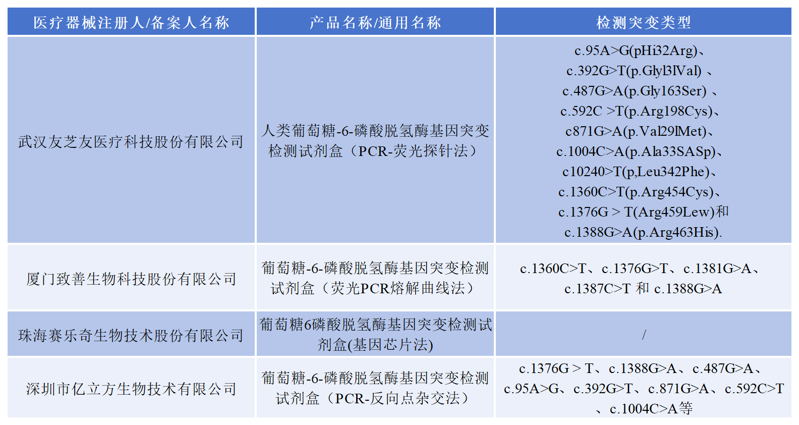 截止2024年,共計有107個G6PD檢測相關產(chǎn)品,其中有4個屬于基因突變檢測試劑盒。