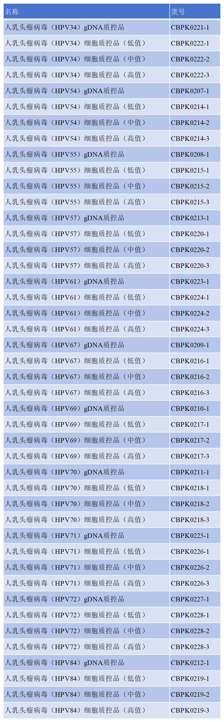 前期,科佰生物已經(jīng)推出了18種高危型和9種低危型的HPV分子診斷標(biāo)準(zhǔn)品,詳情可以點(diǎn)擊【免費(fèi)試用】人乳頭瘤病毒HPV核酸檢測標(biāo)準(zhǔn)品新品上線,可申請(qǐng)免費(fèi)試用 查看