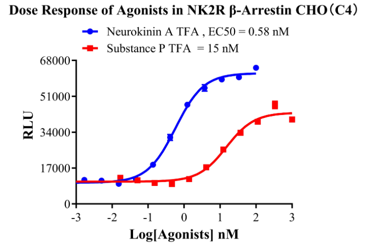 為了助力NK2R藥物的研發(fā),科佰生物及時(shí)開發(fā)了基于IP-One信號通路的NK2R細(xì)胞模型和基于β-Arrestin信號通路的細(xì)胞模型,用于候選藥物早期機(jī)理研究。